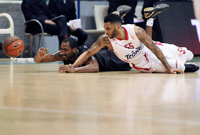 No2.) Kyle Hines (14.5 ppg-4.5 rpg-1.5 bpg-3.5 rcv fouls-23/43 fg-22.8 per game) : Hines was simply a dynamite for Olympiakos in this playoff series. Ivkovic played him at center position position, especially in the fourth quarters. Hines took advantage his speed, power and simply destroyed Montepaschis ‘light’ frontcourt with his points and offensive boards. Technically, Hiness biggest advantage is his ability to defend in the paint and also stay in front of a quick player in the perimeter. Montepaschis guards just couldnt pass Hines and drive to the rim..