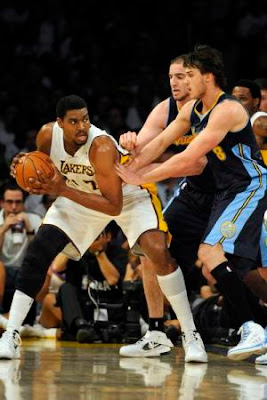 Η άλλη ομάδα του Λος Αντζελες έδωσε τον πρώτο της αγώνα στη ποστ σίζον στο Στέηπλς Σέντερ χωρίς τον Φίλ Τζάκσον στον πάγκο. Γράψαμε προχθές ότι οι Λέηκερς πρέπει να εμφανίσουν το σκληρό αμυντικό μπάσκετ που έπαιξαν κάποια στιγμή μέσα στη σεζόν για να μπορούν να προχωρήσουν στην ποστ σίζον και αυτό έκαναν. Τα γκαρντ τους έδιναν συνεχώς διαδρόμους στους περιφερειακούς του Ντένβερ, στέλνωντάς τους πάνω στον Μπάινουμ ο οποίος εκτός του τρίπλ νταμπλ (10π.-13ριμπ.-10μπλοκ) ισοφάρισε το ρεκόρ των πλέη οφς στις τάπες, σκεπάζοντας τα καλάθια στο 1ο ματς. Ο Κόμπε ήταν πολύ καλός στην επανάληψη (αρκετά άστοχος στο ξεκινημα), ο Γκαζόλ πάσαρε σεμιναριακά τη μπάλα και ο Μπράουν είδε την ομάδα του να παρουσιάζει μια πολύ ισορροπημένη επίθεση πέρα από το γεγονός ότι κράτησε μια τόσο καλή επιθετικά ομάδα στους 88 πόντους, που όσοι είδαν το παιχνίδι είμαι σίγουρος ότι θεωρούν