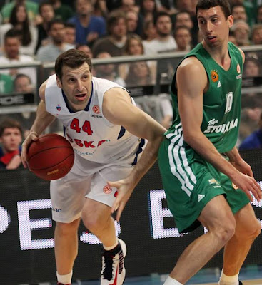 -Ο Ολυμπιακός σωστά σχεδίασε τη στρατηγική του πάνω στο ματς του πρώτου γύρου, όπου η Κίμκι όπως είχαμε σχολιάσει τότε –παρά το αποτέλεσμα- είχε βγάλει στην επιφάνεια πολλές από τις αδυναμίες της ομάδας του Γιώργου Μπαρτζώκα. Η βάση του αμυντικού πλάνου (πάνω στο οποίο στηρίχτηκε η νίκη των ερυθρολεύκων) ήταν 1.) ο περιορισμός του πικ εν ρολ των Ρώσων 2.) το να στείλει η ερυθρόλευκη άμυνα τη μπάλα μακριά από το ποστ, στοχοποιόντας τον Λόντσαρ που είναι πολύ ικανός σε αυτό κομμάτι. Και οι δύο αυτοί τομείς, οι οποίοι πέρυσι αποτελούσαν το δυνατό στοιχείο του αγωνιστικού στυλ της ομάδας, φέτος είναι η «πληγή» των Πειραιωτών, οπότε εκ των προτέρων η ελληνική ομάδα γνώριζε το που θα χτυπήσει ο αντίπαλος. Ο τελικός βαθμός στο αμυντικό effort είναι πολύ καλός. Ο Ολυμπιακός είχε ενέργεια, είχε αμυντικό πλάνο. Εκεί που πάλι δεν τα κατάφερε ήταν στην άμυνα μακριά από τη μπάλα, παιχνίδι στο οποίο όμως οι Ρώσοι είναι πολύ ικανοί. Είδαμε πάλι τους πρωταθλητές να «τρώνε» κοψίματα πάνω στην άμυνα τους και πάσες σε πρώτο χρόνο, τρόπος επίθεσης με τον οποίο ρολάρει η Κίμκι. Αντίθετα ο Ολυμπιακός ανταποκρίθηκε και στην transition defense, όπου οι περιφερειακοί του παρουσίασαν ετοιμότητα βγαίνοντας γρήγορα πάνω στη μπάλα και στέλνοντας τον ντριμπλέρ στις γωνίες, με συνολικά γρήγορες επιστροφές. Η αλήθεια είναι ότι η Κίμκι διαθέτει μια versatile ανάπτυξη στο επιθετικό κομμάτι και η αμυντική επιτυχία έχει σοβαρό βαθμό δυσκολίας. Εγώ λοιπόν δίνω credit στους ερυθρόλευκους σε αυτόν τομέα. Ναι, η απουσία ενός λίμπερο-προστάτη όπως ο Ντόρσεη στο κέντρο του ζωγραφιστού έχει βγάλει τις όποιες αδυναμίες της ομαδικής άμυνας αλλά η ουσία είναι ότι δέχθηκαν μόλις 70 πόντους . Μπράβο..