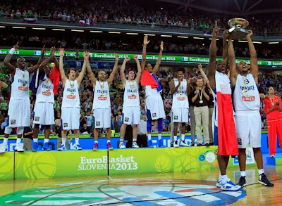 ΧΩΡΟΥΣ για τη Γαλλία. Είναι εκπληκτικό το πώς η ομάδα του Κολέ σκότωσε τους Λιέτουβο, χτυπώντας συνεχώς στη καρδιά της ρακέτας με lay ups απέναντι σε μια ανήμπορη να αντιδράσει άμυνα. Ο τρόπος λοιπόν που σκόραραν οι δύο ομάδες στο ξεκίνημα έδινε (σε αντίθεση με τον πίνακα) σαφή προβάδισμα στους Γάλλους. Ο μόνος παίκτης του Καζλάουσκας που μπήκε στο «άβατο» κάποιες φορές και σκόραρε από μέσα ήταν ο Καλνιέτις (στις γνωστές του επελάσεις) χωρίς όμως να πονέσει ιδιαίτερα τους μετέπειτα πρωταθλητές (το πιστεύετε ότι ακόμα δε μου βγαίνει να τους αποκαλώ έτσι, μετά τα τόσα στραπάτσα..?)