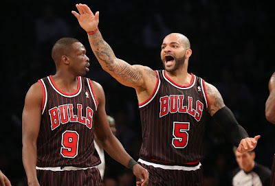 Όχι τυχαία.. Το Σικάγο θα παλέψει για τον τίτλο αλλά κοιτάζει την ημέρα που ξημερώνει. Ήδη ακούγεται ότι θα κάνει χρήση του όρου της αμνηστίας για τον Μπούζερ (ώστε το συμβόλαιο του να «φύγει» από τα βιβλία), τη στιγμή που ο Ντένγκ «τρέχει» την τελευταία του σεζόν. Πάντα σε συνάρτηση με το πώς θα εξελιχτεί η φετινή σεζόν.. Στο Σικάγο σκέφτονται ότι εφόσον αποχωριστούν τους δύο Blue Devils, θα «ανεβάσουν» στην starting lineup τον Γκίμπσον και θα φέρουν στη πόλη των ανέμων τον Μίροτιτς. Έχουν παιδιά από πίσω (Μπάτλερ που θέλει να συνεχίσει, Τιγκ) για να πλαισιώσουν την περιφερειακή γραμμή τους και φυσικά τον Νόα.