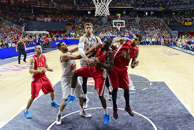 Το μελανό σημείο, το οποίο δεν επέτρεψε στον Ολυμπιακό να φέρει το ματς πνευματικά στα μέτρα του και να το κρατήσει εκεί γονατίζοντας έναν εύθραυστο ψυχολογικά αντίπαλο, ήταν ότι η ελληνική ομάδα σε πολλές περιπτώσεις δεν πήρε πόντους από αυτά που αναγκαστικά έπρεπε να παραχωρήσει η ισπανική άμυνα. Δεν είδα ποτέ τον Πρίντεζη να βάζει πραγματικά τη μπάλα στο παρκέ απέναντι στον Αγιόν ή την ομάδα να ψάξει επιμελώς καταστάσεις στη weak side ή με cuts των φόργουορντς στη τελική, απειλώντας πραγματικά την καρδιά της ρακέτας μια ομάδας που ακόμα και αν αμύνθηκε καλύτερα σε αυτό το F4 στο βαμμένο, έχεις εμφανές πρόβλημα σε αυτό το επίπεδο στο συγκεκριμένο κομμάτι. Ίσως τα γκαρντς του Ολυμπιακού αντιμετώπισαν με σκεπτικισμό καταστάσεις καθαρής διείσδυσης μέχρι τέλους καθώς ενδεχόμενη αποτυχία σε τέτοιες περιπτώσεις έχει σχεδόν δημιουργήσει το πλαίσιο στη Ρεάλ για πόντους στο transition.. Η πραγματικότητα είναι ότι αυτή τη φορά, η ομάδα που σταδιακά έχασε το μυαλό της ήταν ο Ολυμπιακός κατάσταση που απορρέει και από την εκνευριστική αστοχία της ομάδας στις προσωπικές. Οι βολές σε τέτοιο ματς σε παίρνουν από το χέρι και σε βοηθούν να πατήσεις, να βρείς ρυθμό όντας ο πιο ασφαλής δρόμος για το καλάθι. Η φοβερή αστοχία (12/26) σε συνδυασμό με την προσμονή της «επιστροφής» του εμφανώς πολύ καλά μαρκαρισμένου Σπανούλη, στην τελική ευθεία του παιχνιδιού χάλασε το μυαλό μιας από τις πιο δυνατές πνευματικά ομάδες που είδε το σύγχρονο ευρωπαϊκό μπάσκετ. Το παθητικό των 78 πόντων στην άμυνα αδικεί ως νούμερο το effort των ερυθρολεύκων οι οποίοι ανάγκασαν μια από τις διαχρονικά πιο low mistake ομάδες της διοργάνωσης σε 16 (!!) λάθη και σε μια όχι τόσο ισορροπημένη κατανομή εκτελέσεων στην επίθεση (μοιρασμένα δίποντα-τρίποντα). Στην επίθεση του όμως ο Ολυμπιακός βρήκε μια ομάδα που μπορεί να τον ακολουθήσει και να αμυνθεί σαν αυτόν (όχι ελεύθερες ματιές, «αλλαγές» και trapping με τον κίνδυνο κλεψίματος να ελλοχεύει, γρήγορα recovers). Για αυτό και ο Σφαιρόπουλος στηρίχτηκε αρκετά σε defensive lineups για να επιβιώσει (Μάντζαρης-Λαφαγιέτ μαζί στο μπακόρτ με τον Λοτζέσκι κύριο δημιουργό στο «3»). Όταν ο Σλούκας (ο πιο σταθερός παίχτης της ομάδας στη Μαδρίτη) άναψε τη φλόγα στη τρίτη περίοδο στρώνοντας το χαλί ήρθε ο παράγοντας-Χ.