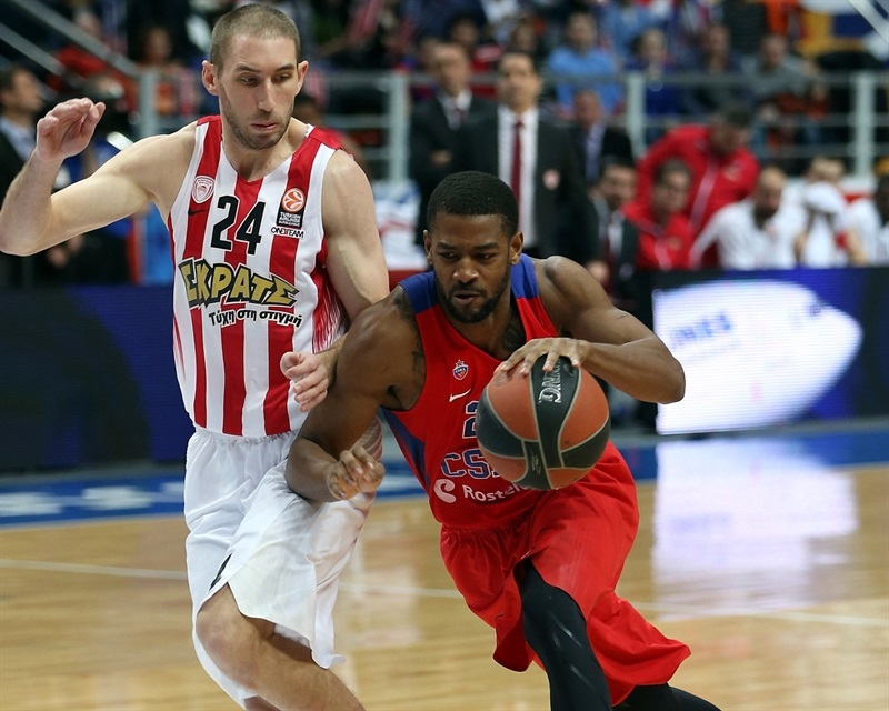 Ξεκάθαρα ο κόουτς Ιτούδης έχτισε όλη την επίθεση της ομάδας του με γνώμονα την τακτική του αντιπάλου και την ικανότητα του να παίζει με “αλλαγές” προσπαθώντας να παρουσιάσει μια ΤΣΣΚΑ έτοιμη να μετατρέψει αυτή τη τακτική σε δικό της όπλο. Τον είδαμε επανειλημμένως να βάζει σκριν στη πλάτη του Χάντερ στην “αλλαγή” σε κεντρικά picks στον άξονα ενώ σε παρόμοιο play με κάθετο σκριν (το οποίο παίζουν πολύ οι Ρώσοι φέτος, χαρακτηριστικό το παιχνίδι της προηγούμενης εβδομάδας) που οδηγεί σε τρίποντο από τη κορυφή της ρακέτας, με δεδομένη την ικανότητα της αντίπαλης άμυνας πήγαν με πολύ υπομονή σε High Low απορρίπτοντας το τρίποντο απέναντι σε μακριά χέρια ή σε γρήγορο χρόνο. Προχωρώντας στο ματς ο Έλληνας προπονητής της “αρκούδας” παρουσίασε (στη ίδια βάση και φιλοσοφία) 1-4 High Stack Offense, η οποία κατέληγε σε Α-Set μετά από συνεχόμενες Hand off συνεργασίες στη περιφέρεια που σκόπευαν στο να κερδίσουν πλεονέκτημα μέσα από τις “αλλαγές” του αντιπάλου, και 1-4 Low Stck Offense (με 4 παίχτες παρατεταγμένους στη baseline) την οποία συχνά φέτος οι Τεόντοσιτς-Ντε Κολό “καίνε” με τη ροπή τους να επιτεθούν στο καλάθι σε πρώτο χρόνο. Σε μια ευρύτερη βάση, ο Δημήτρης Ιτούδης ήθελε οι παίχτες του να επιτίθενται σε συνέχεια πάνω στο ευνοϊκότερο για αυτούς ζευγάρι στην άμυνα του Ολυμπιακού και μέσα από το ζωγραφιστό (είτε με διείσδυση είτε με post παιχνίδι) εκτιμώντας ότι σε αυτή τακτική σε βάθος χρόνου θα δικαιώσει την ομάδα του και θα κάνει την επίθεση της σαφώς πιο Efficient. Νομίζω δικαιώθηκε..