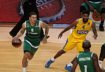 Η άμυνα των πρασίνων βρίσκεται σε αρκετά καλό επίπεδο μετά από ένα μήνα στη διοργάνωση. Αρκετά καλό.. Στις σταθερές των Καλάθη-Γκιστ έχει προστεθεί ο all around-Νίκολς ο οποίος νομίζω ότι είναι μάλιστα ο πιο συνεπής και αποτελεσματικός αμυντικός της ομάδας μετά τον Νικ. Δεν είναι τυχαίο ότι στην αναμέτρηση της Πέμπτης οι δύο τους έγραψαν τα περισσότερα λεπτά μέσα στο παρκέ δείγμα των προθέσεων του Ισπανού κόουτς. Στο αμυντικό κομμάτι βρίσκεται το άρμα μάχης των πρασίνων σε αυτό το διάστημα. Εκεί θα βασιστούν ώστε να μείνουν όρθιοι μέχρι να χτίσουν την επίθεση τους η οποία θέλει χρόνο ακόμα. Ο Πασκουάλ βλέπει τις παραγωγικές δυνατότητες του συνόλου του για αυτό τη προκειμένη στιγμή προσπαθεί να παγιώσει ευνοϊκές για αυτόν (σε επίπεδο σκορ) καταστάσεις με αμυντικά σχήματα ακόμα και εάν αυτά είναι δυσλειτουργικά στην επίθεση. Είνaι φανερή η προσπάθεια να προστατευθεί ο Μπουρούσης ο οποίος αποφεύγεται να εγκαταλείπει το ζωγραφιστό και να ανεβαίνει ψηλά όπου είναι ευάλωτος. Μου έκανε εντύπωση που η Μακάμπι με τόσους πολλούς καλούς midrange εκτελεστές μετά από ντρίμπλα. Μετά βέβαια σκέφτηκα ότι μιλάμε για τη φετινή Μακάμπι..