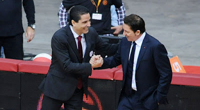 Και οι δύο κόουτς στηρίχτηκαν σε 2-3 High Ball Screen καταστάσεις, περισσότερο δε ο Ολυμπιακός για τον οποίο το συγκεκριμένο πλαίσιο επίθεσης έχει συνδεθεί πλέον με τα λεπτά στα οποία ο Σπανούλης δε βρίσκεται στο παρκέ. Βλέπω μια ευελιξία στον τρόπο που αναπτύσσεται και εκτελείται το συγκεκριμένο format από τους ερυθρόλευκους και αυτό μου αρέσει. Στο ΟΑΚΑ και με τα αργά πόδια των Φώτση και Μπουρούση να έχουν γίνει ..ταπετσαρία στα αποδυτήρια του Ολυμπιακού, ο Γιάννης Σφαιρόπουλος πήρε το καλύτερο από αυτήν την επίθεση με τον Σπανούλη στο παρκέ. Πέραν της ευστοχίας του, ο αρχηγός των ερυθρολεύκων μετέτρεψε το ματς σε ένα σεμινάριο τιμωρίας της αδυναμίας του αντιπάλου καθώς ειδικά στη δεύτερη περίοδο δεν άφηνε ανεκμετάλλευτο εκατοστό μετά το pick και τιμωρούσε τη πρόθεση (της άμυνας) πριν καν την έκφραση εκτελώντας αυτοματοποιημένα και παράλληλα υποδεικνύοντας αλλαγή φιλοσοφίας στον αντίπαλο πάγκου. Ενώ με τους Χάκετ (στο “1” main ball handler) και Λοτζέσκι ο Ολυμπιακός έτρεχε κανονικά αυτές τις καταστάσεις (με τον Βέλγοαμερικανό να ανεβαίνει ψηλά στον άξονα από τη τελική πέρνωντας το down screen του “5”), με τον Σπανούλη η προσέγγιση άλλαζε και ο γκαρντ της τελικής γραμμής (Γκριν) λειτουργούσε κυρίως ως screener με τη μπάλα να μην αλλάζει χέρια. Στη τέταρτη περίοδο δε, ο Σφαιρόπουλος (πάλι σε 2-3 High Ball Screen επίθεση) μετατόπισε τον Λοτζέσκι από τον άξονα στη γωνία και μαζί του τη πορεία του δεύτερου σκριν δίνοντας επιλογή για curling, άμεση εκτέλεση ή side pick. Ο τεχνικός των πρωταθλητών Ελλάδας πήρε σπουδαίο παιχνίδι από τον Χάκετ (και μόνο το ότι σου δίνει τη δυνατότητα να μαρκάρεις το “5” του αντιπάλου στο χαμηλό post χωρίς βοήθεια λέει πολλά, πολύ δυνατός στις προσωπικές μονομαχίες) και τον σταθερά καλό Birch. Στο τέλος, με το ματς να πηγαίνει όπως αναμενόταν στο ένας εναντίον ενός ο προπονητής του Ολυμπιακού ρίσκαρε βγάζωντας τη ναυαρχίδα της αμυντικής του τακτικής (Birch) και επιλέγοντας επίθεση με τους Σπανούλη-Πρίντεζη (στο “5”) και τρεις παίχτες γύρω τους που μπορούν να σουτάρουν. Όσο για την απόφαση του να κάνει φάουλ στον Καλάθη.. Είναι μέρος της συναισθηματικής νοημοσύνης και του κλίματος που έχει αρχίσει να διαμορφώνεται στις μάχες των “αιωνίων”. Ο Σφαιρόπουλος είχε τον Σπανούλη “ζεστό” στη πεντάδα και μαζί του αρκετό δηλητήριο για να ρισκάρει ακόμα και δύο εύστοχες βολές του αντιπάλου. Δύο φορές θριαμβευτικά στους πρόσφατους τελικούς ο Ολυμπιακός κατάφερε και έφυγε όρθιος από το συγκεκριμένο γήπεδο σκοράροντας με αυτόν τον παίχτη σε ανάλογες καταστάσεις. Υπήρχε υπόβαθρο το οποίο τον ώθησε λοιπόν σε μια τέτοια απόφαση.Αμφιβάλλω εάν η ιστορία στους περυσινούς πολύ πρόσφατους (μιας και τώρα έχει αρχίσει η νέα σεζόν) τελικούς είχε γραφτεί διαφορετικά θα έπαιρνε την ίδια απόφαση. Σε περίπτωση μάλιστα αποτυχίας θα είχε λιγότερους κατήγορους. Η ιστορία του δίνει το δικαίωμα να πιστεύει πως έπραττε σωστά..